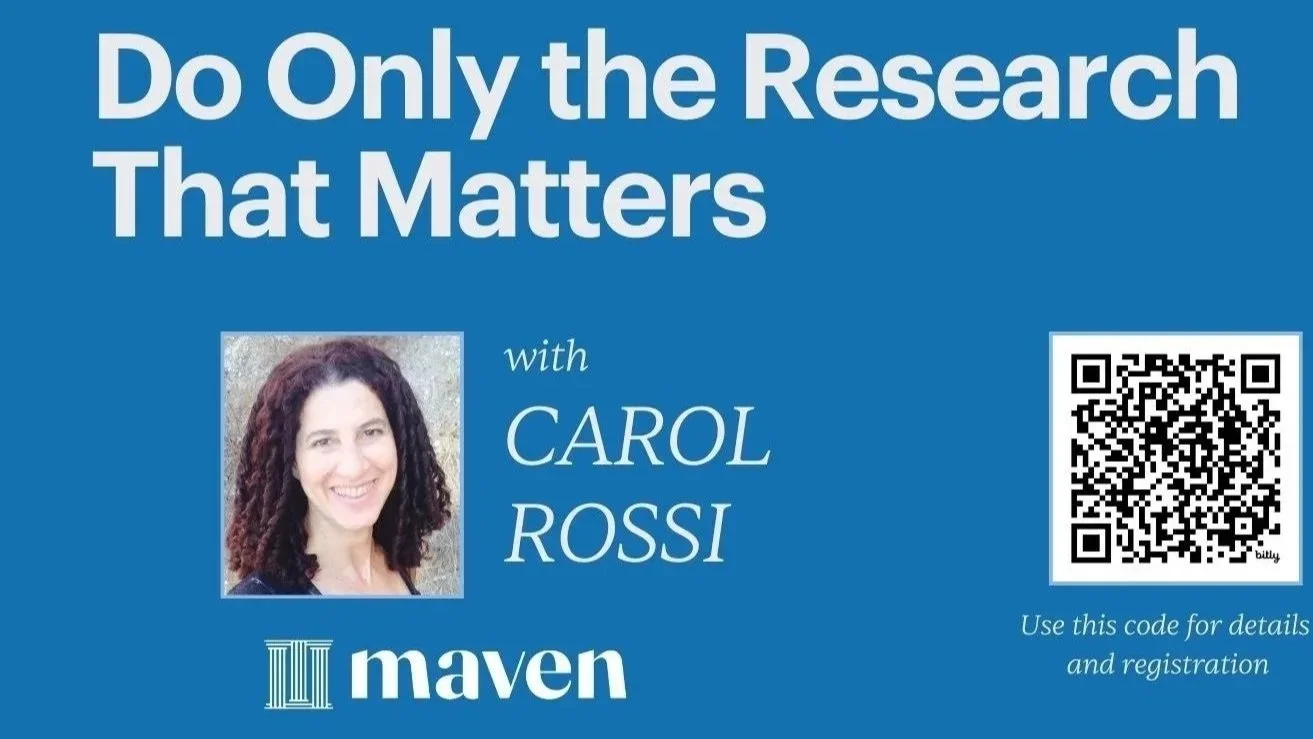 Do Only the Research that Matters - Led by Carol Rossi / Hosted on Maven